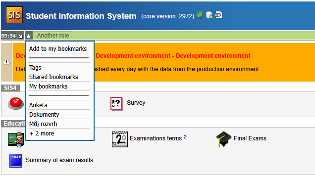 Clicking on "my bookmarks", "shared bookmarks", or "tags" redirects to the Bookmarks SIS3 module.